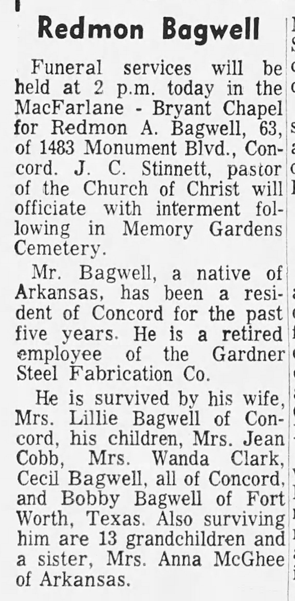 - Redmon A. Bagwell b. c 1862, d. 16 Sep 1938
