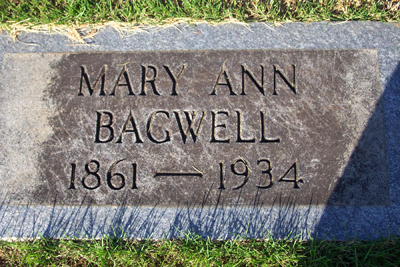 - Mary Ellen Bagwell b. Jan 1870, d. 18 Jan 1922