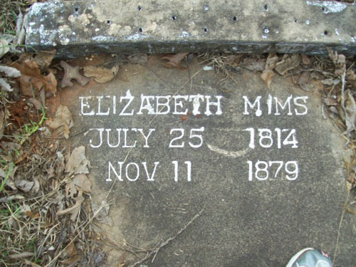 - Elijah Mims+ b. 14 May 1826, d. 14 Mar 1908