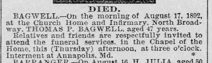 - [S7223] The Baltimore Sun (Baltimore, Maryland), August 19, 1892, Page: 08.
