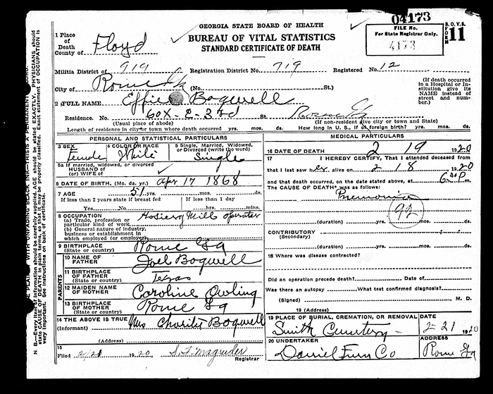 - Francis Effie Bagwell b. 27 May 1892, d. 19 Mar 1925