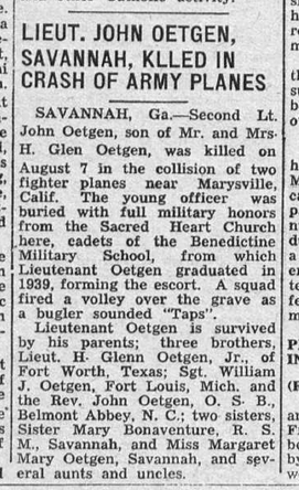 - Lieutenant John Oetgen3 b. 23 May 1921, d. 7 Aug 1944