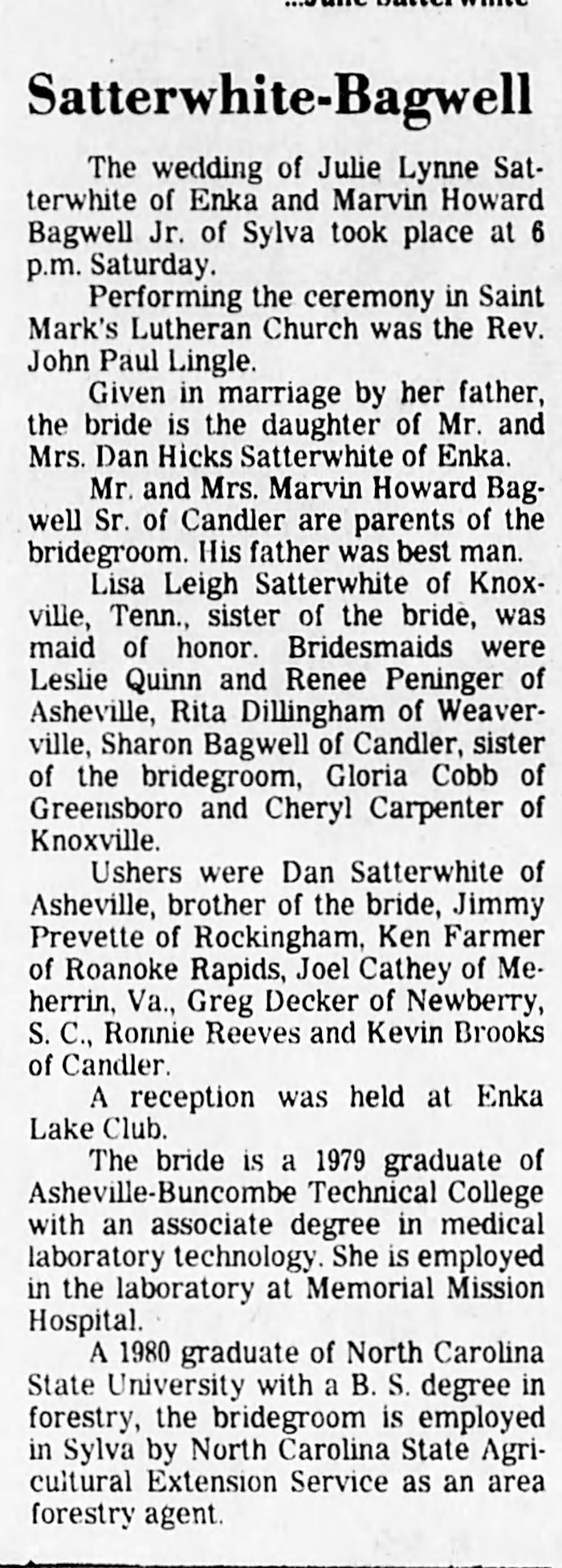 Marvin Howard Bagwell and Julie Satterwhite - Marriage Annoucement