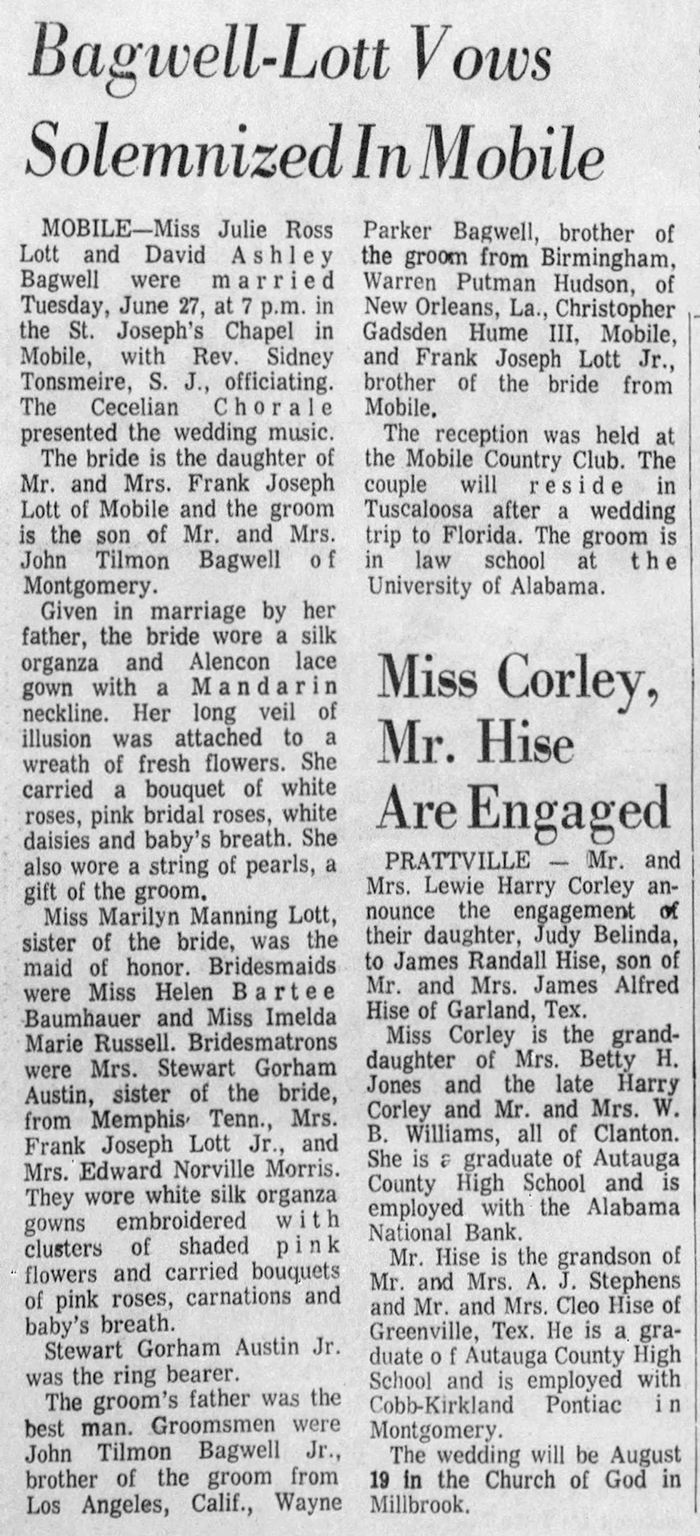 David Ashley Bagwell and Julie Lott - Marriage Annoucement