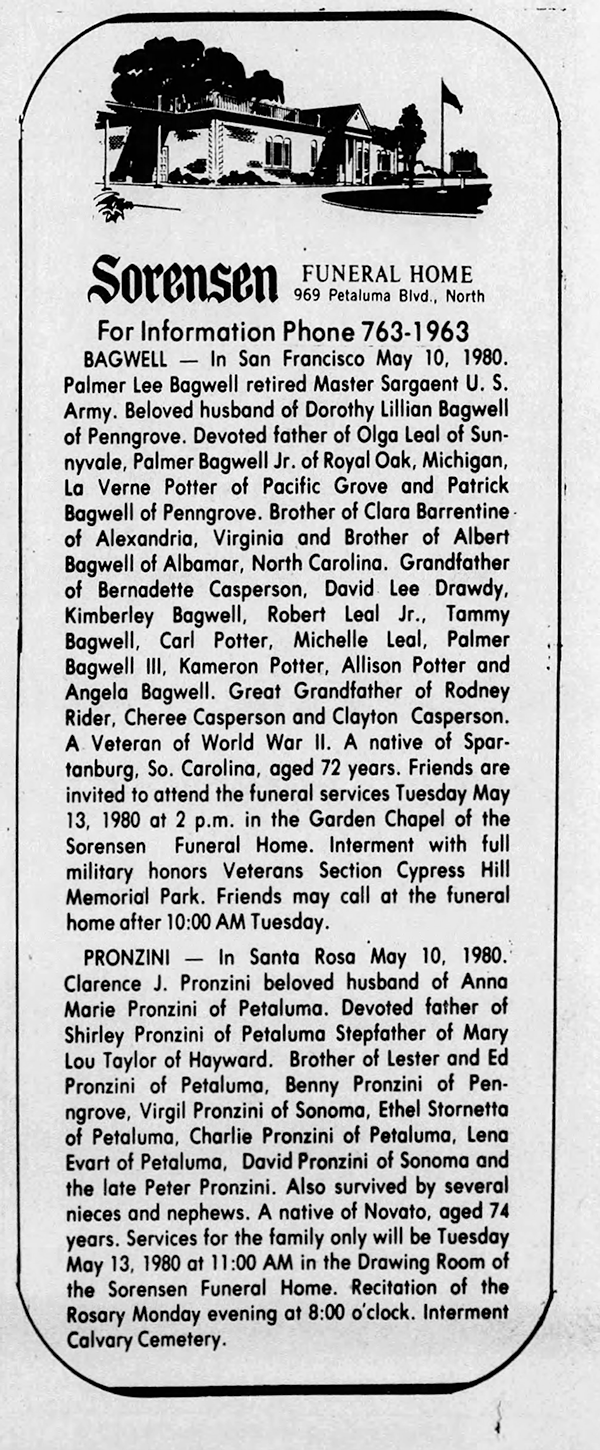 - James Wiley Bagwell b. Sep 1946, d. 11 Sep 2011