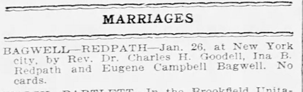 Eugene Campbell Bagwell and Ina Redpath - Marriage Annoucement