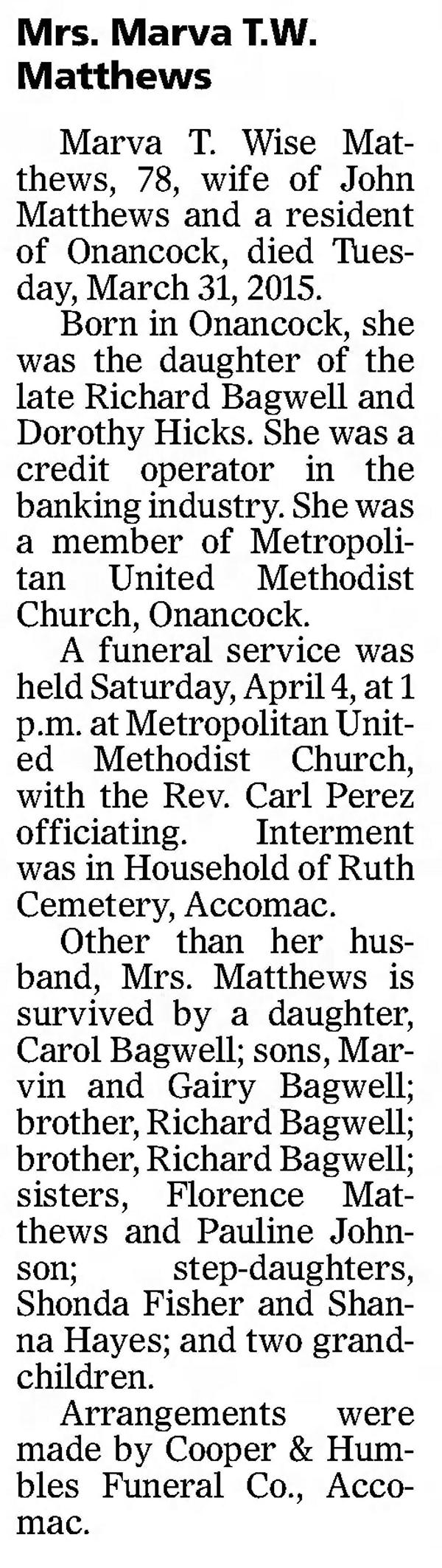 Marve Tabita (Wise) (Bagwell) Matthews - Obituary