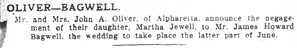 James Howard Bagwell and Martha Oliver - Marriage Annoucement