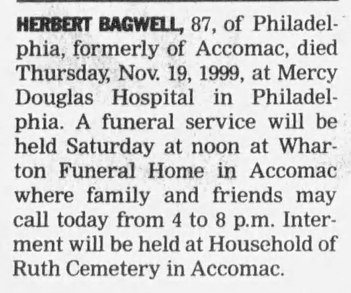 - Herbert Edward Bagwell b. 28 Jul 1912, d. 19 Nov 1999