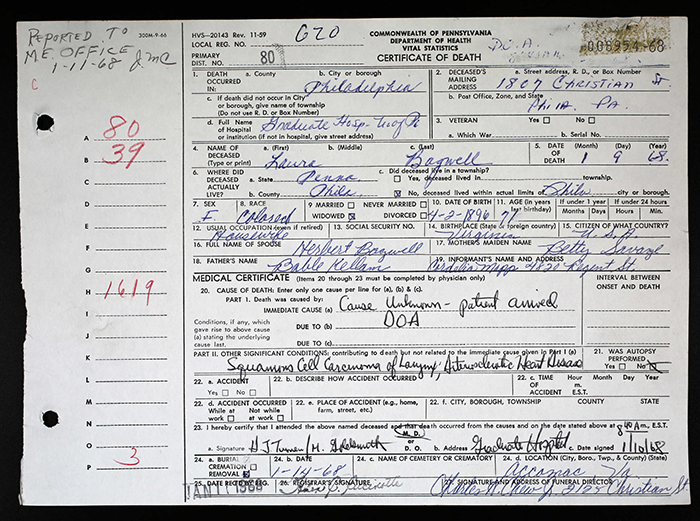 - [S7249] Walter Bagwell, Pennsylvania Death Certificate: Walter L Bagwell.