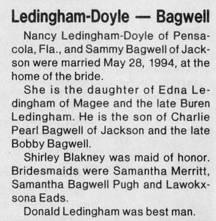Sammy Gwin Bagwell and Nancy Ledingham - Marriage Annoucement