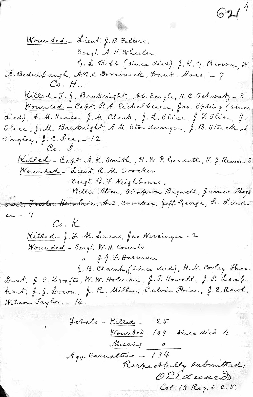 Appomattox Court House, April 9, 1865. He was severely wounded at the Second Manassas Campaign of the Civil War on 29 August 1862. James W. Bagwell died on 3 July 1863 in Gettysburg, Adams County, Pennsylvania, Killed at the Battle of Gettysburg on 3 July 1863. He was buried at Glendale Methodist Church Cemetery, Glendale, Spartanburg County, South Carolina.