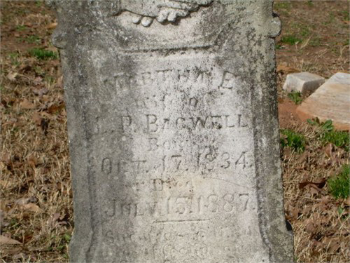 - Martha Ellen Bagwell1 b. 1874, d. 15 Jul 1887