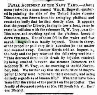 William E. Bagwell was born in 1833 in New York.1 He was the son of Peter James Bagwell and Susan (?)2 William E. Bagwell married Fannie C. Frith circa 1858.3 William E. Bagwell died in November 1863 in Brooklyn, Kings County, New York.1 He was buried at Cypress Hills Cemetery, Brooklyn, Kings County (Brooklyn), New York.1