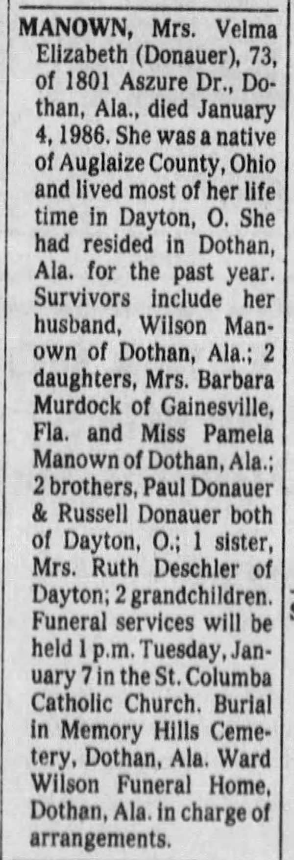 Children of Velma Elizabeth Donauer and Wilson Edward Manown