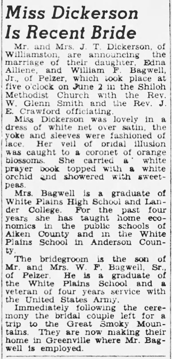 William Frederick Bagwelll and Edna Dickerson - Marriage Annoucement