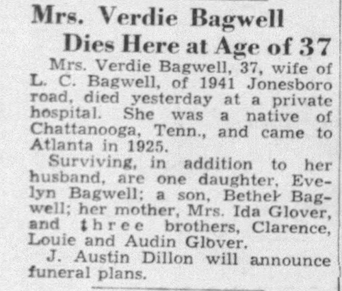 Verdie (Glover) Bagwell - Obituary
