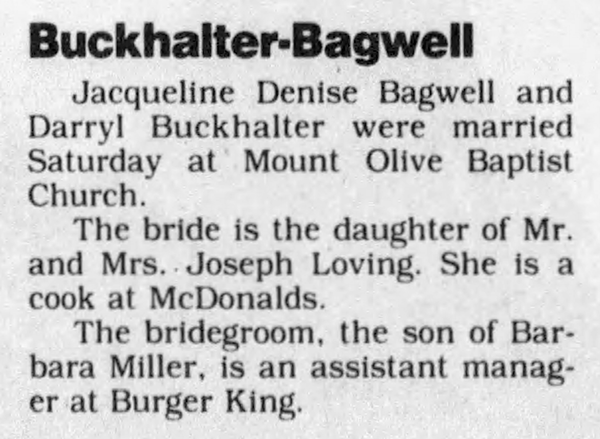 Jacquelin Denise Bagwell and Darryl Buckhalter - Marriage Annoucement