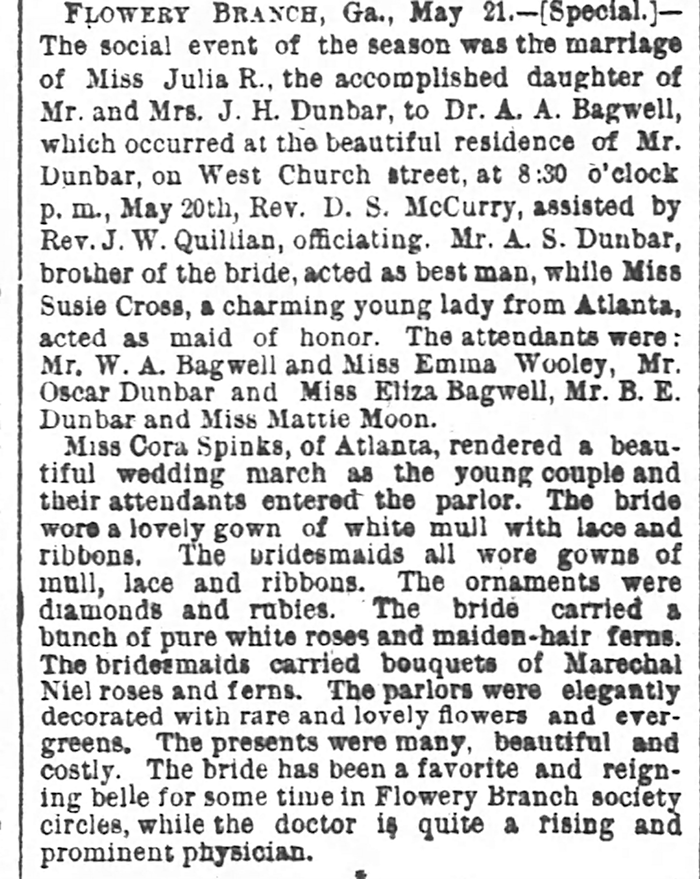 Alfred Asbury Bagwell and Julia Dunbar - Marriage Annoucement