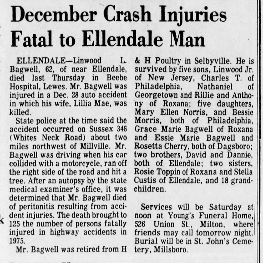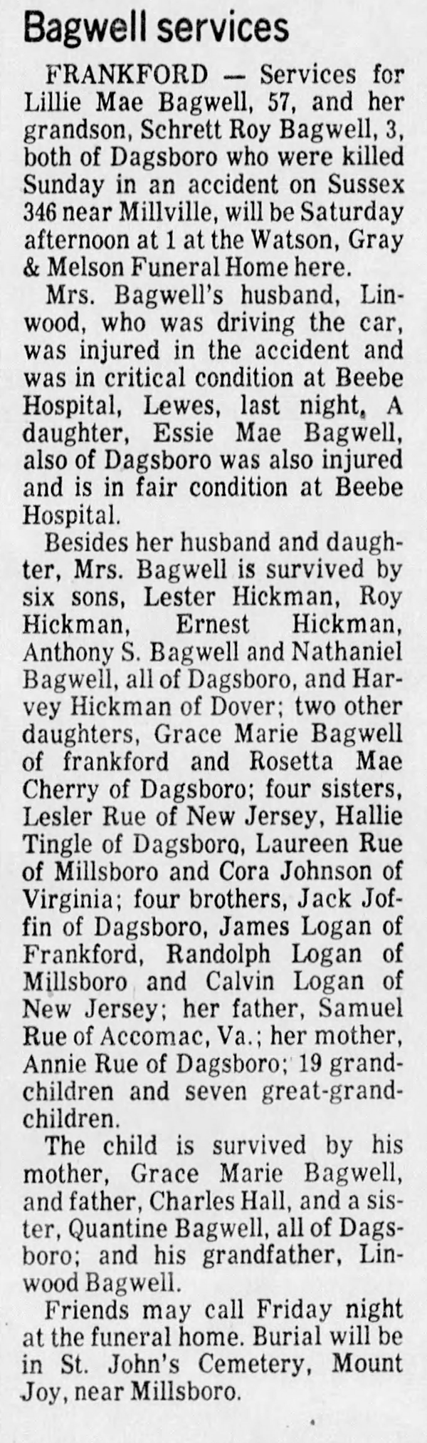 - Linwood Lewis Bagwell Jr. b. 25 Nov 1938, d. 20 Jun 1983