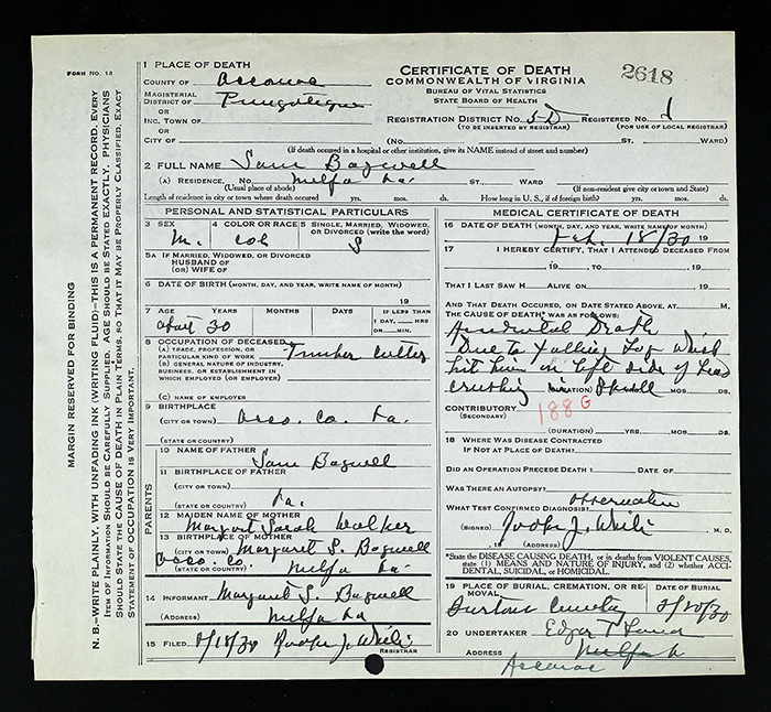 - Samuel Bagwell Jr. b. 5 Mar 1895, d. 18 Feb 1930