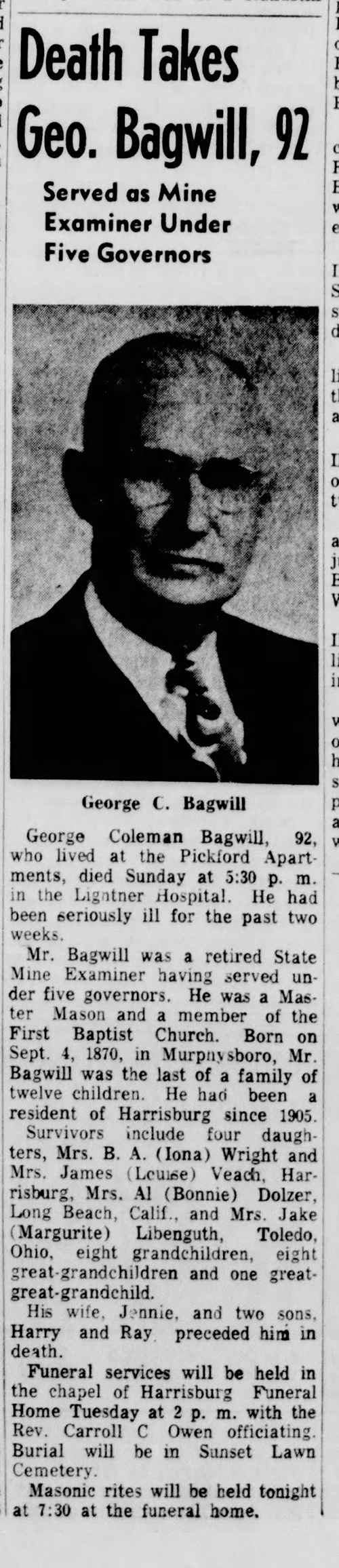 - Harry Alden Bagwell b. 17 Oct 1901, d. 11 Apr 1948