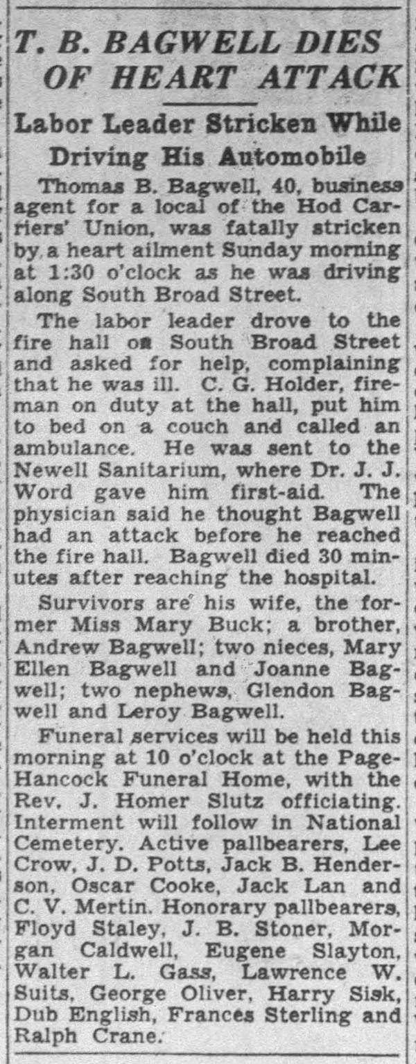 - Thomas Barnard Bagwell1 b. 11 Oct 1930, d. 26 Nov 1930