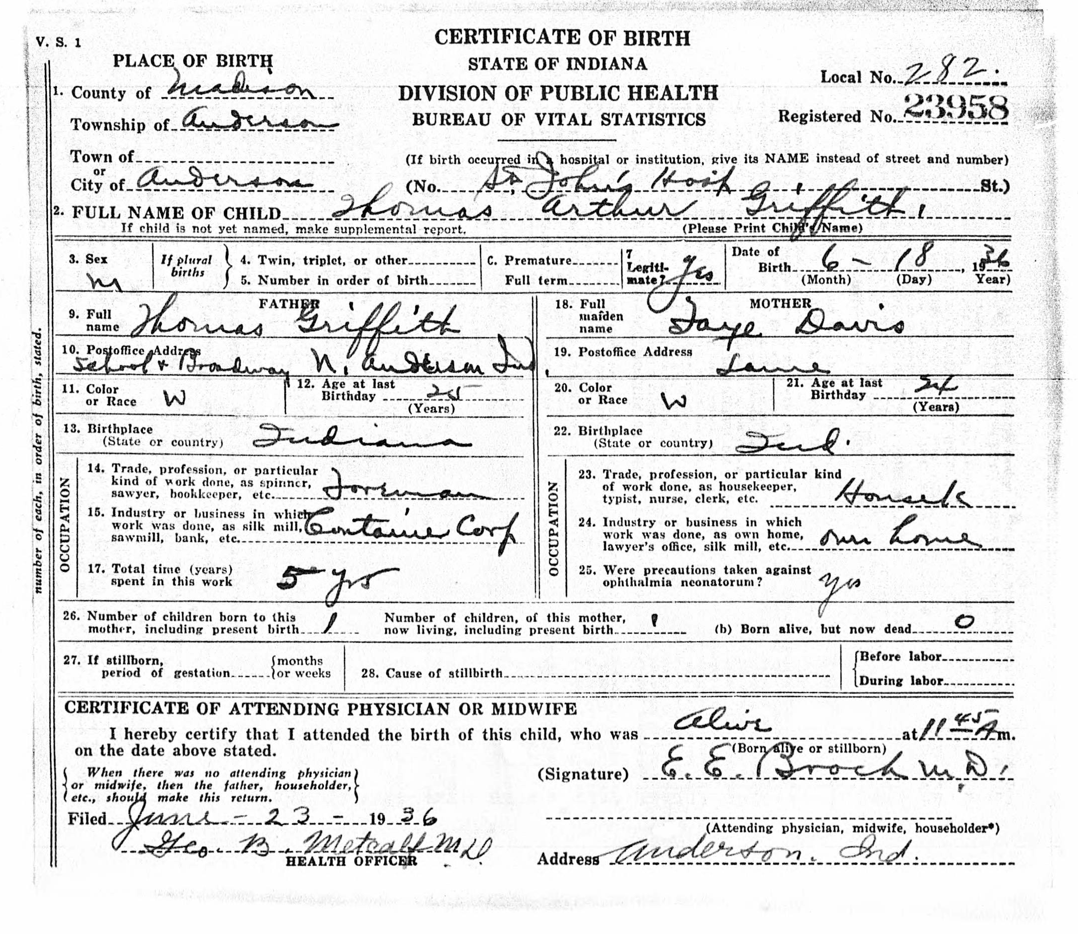 Child of Kimberly Dawn Glenn and Thomas A. Griffith